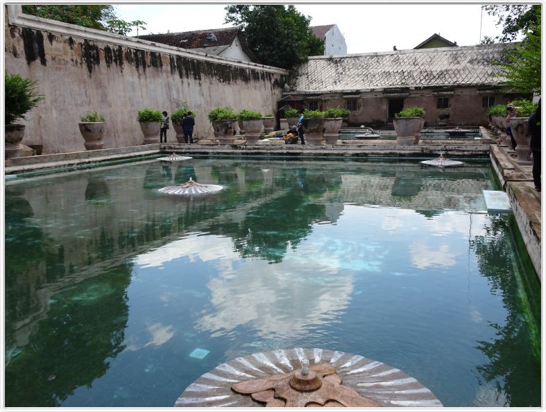Taman Sari (jardin aux fleurs attenant au palais Kraton). Chaque femme du sultan a sa piscine personnelle.