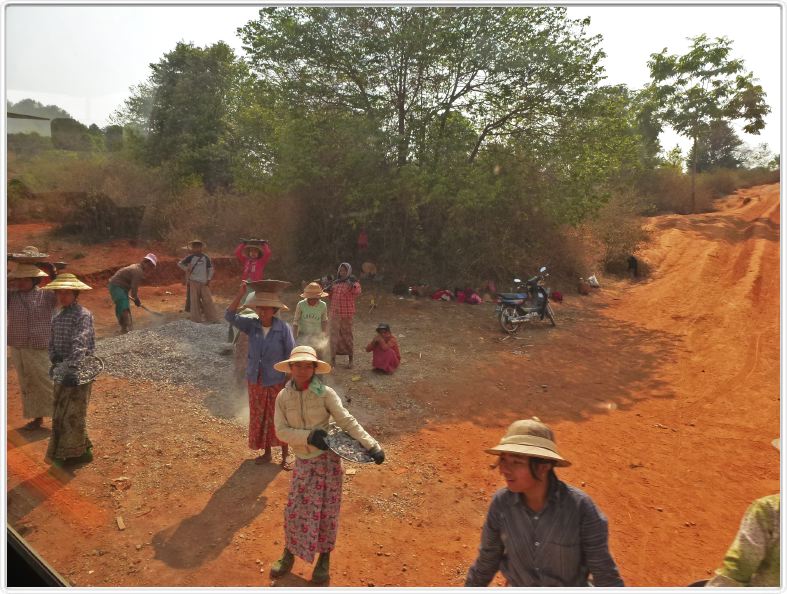 Réfection de la route : cassage des cailloux à la main et transport dans des écuelles.