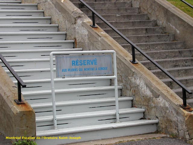 Cet escalier, en bois, qui conduit à l'Oratoire Saint-Joseph du Mont-Royal est réservé aux les pélerins qui montent à genoux.