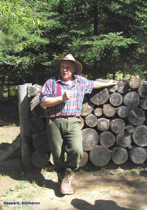 Gaspard est un des guides qui font visiter un village de bûcherons reconstitué près de Saint-Roch de Mékinac. Le personnage, à lui seul, justifie la visite.