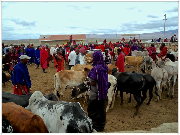 Arrêt sur le marché d'un village. Vente de bestiaux.